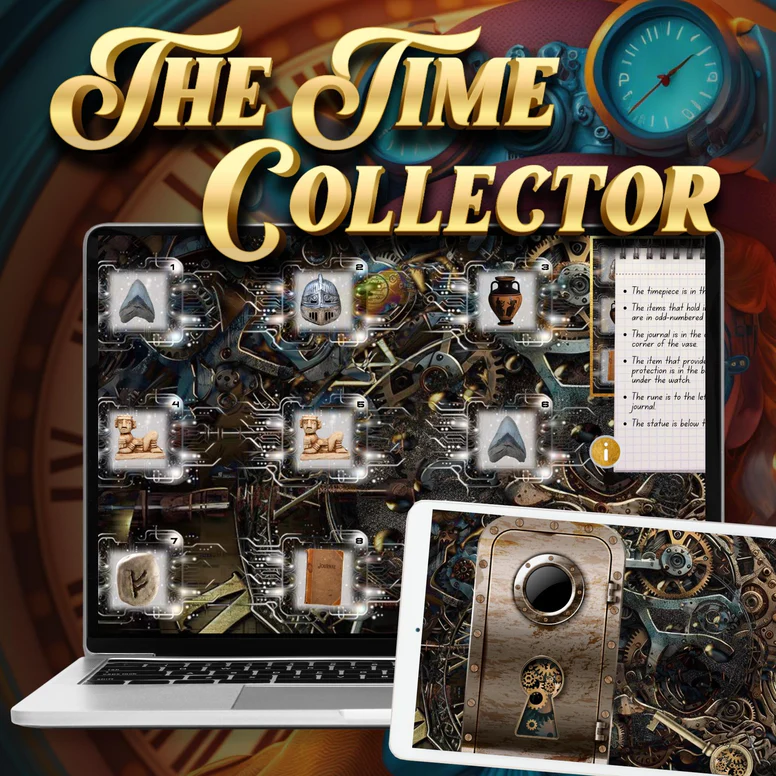 “The Time Collector” was a fun online puzzle game to collect artifacts from different eras by traveling through time. I had fun visiting various scenes from different eras, such as the time of the dinosaur or the moment of the Titanic sinking. I enjoyed solving different types of classic puzzles. The game is not an escape room, but it is a perfect puzzle game for a fun game night for friends and family or for solo players who enjoy stories and traditional puzzles. Why not try an exciting adventure through time?