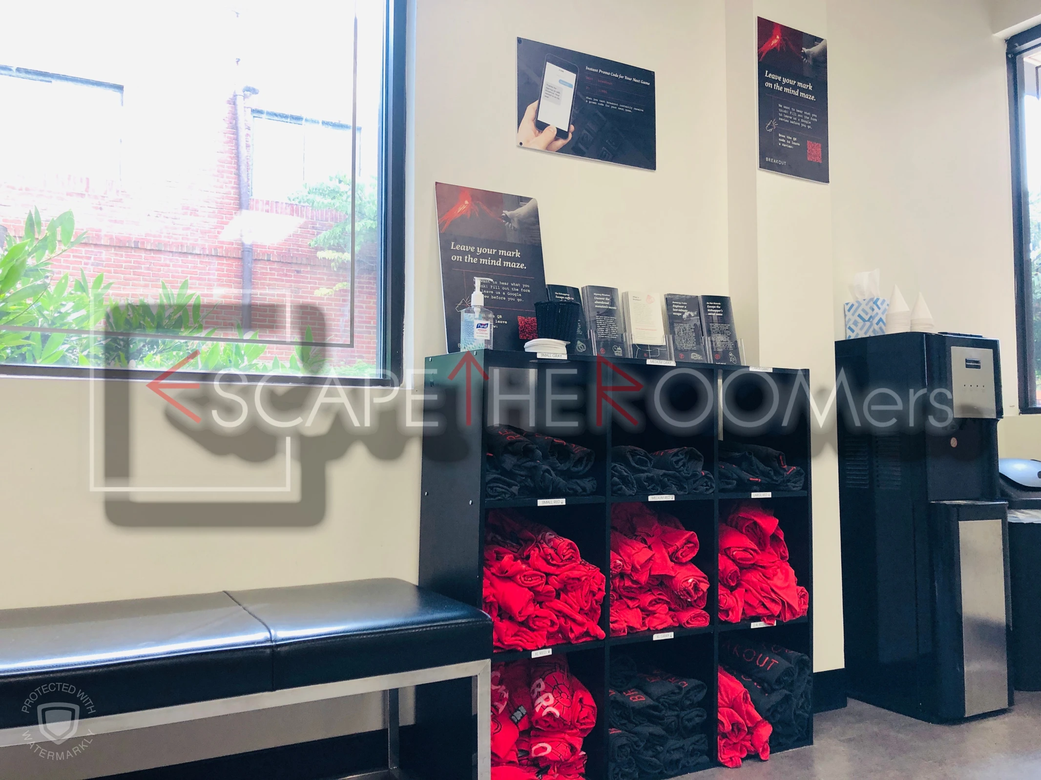 We are excited to finally try out Breakout Games. Today, we arrived at their Timonium, MD location. They currently have 44 locations in the US and 1 in South Africa! This location is located in between two large parking lots so there’s plenty of spaces available. If you are hungry, you can easily grab something to eat before or after in the complex. As we entered the “Zen” tree pathway, we easily saw the big Breakout Games sign from far away. The lobby is quite spacious with plenty of seating, complimentary water, and a good selection of merchandise for you to look at while you wait for your game.