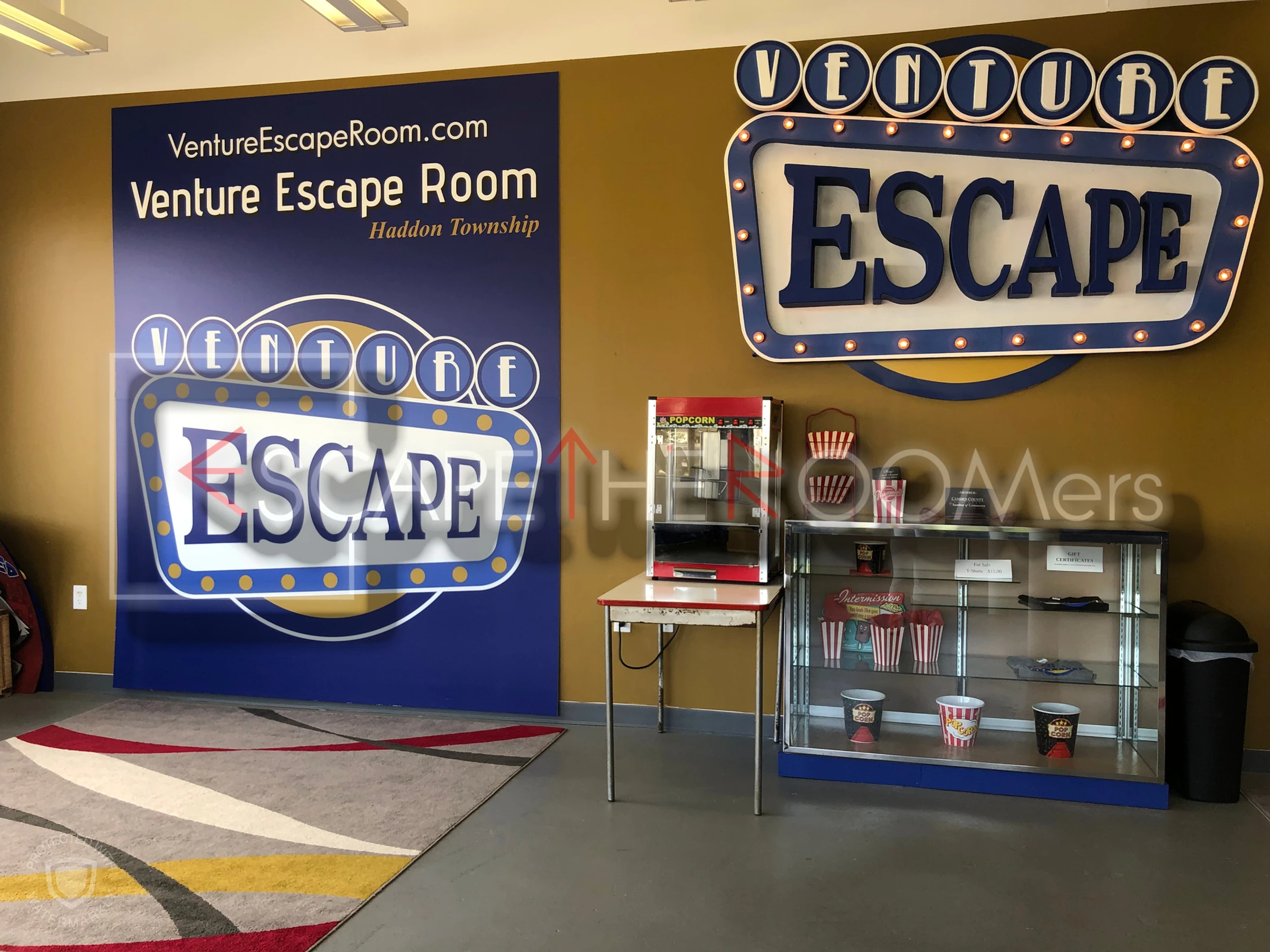 Venture Escape is located in Cherry Hill, New Jersey. We had tried a few other locations near here as we found that this seems to be the prime location for escape rooms since it captures the market for NY, NJ and PA! As we arrived, we noticed that they are a stand-alone building on the corner of the street. There’s a large parking lot right in the front the facility. The NJ Transit bus stops right in the front. Our first impression for the lobby felt like we have just entered into a movie theater. The décor almost made me want to buy a large bag of popcorn. The lobby was very spacious and as you waited for your escape room game to start, you can browse their merchandise.