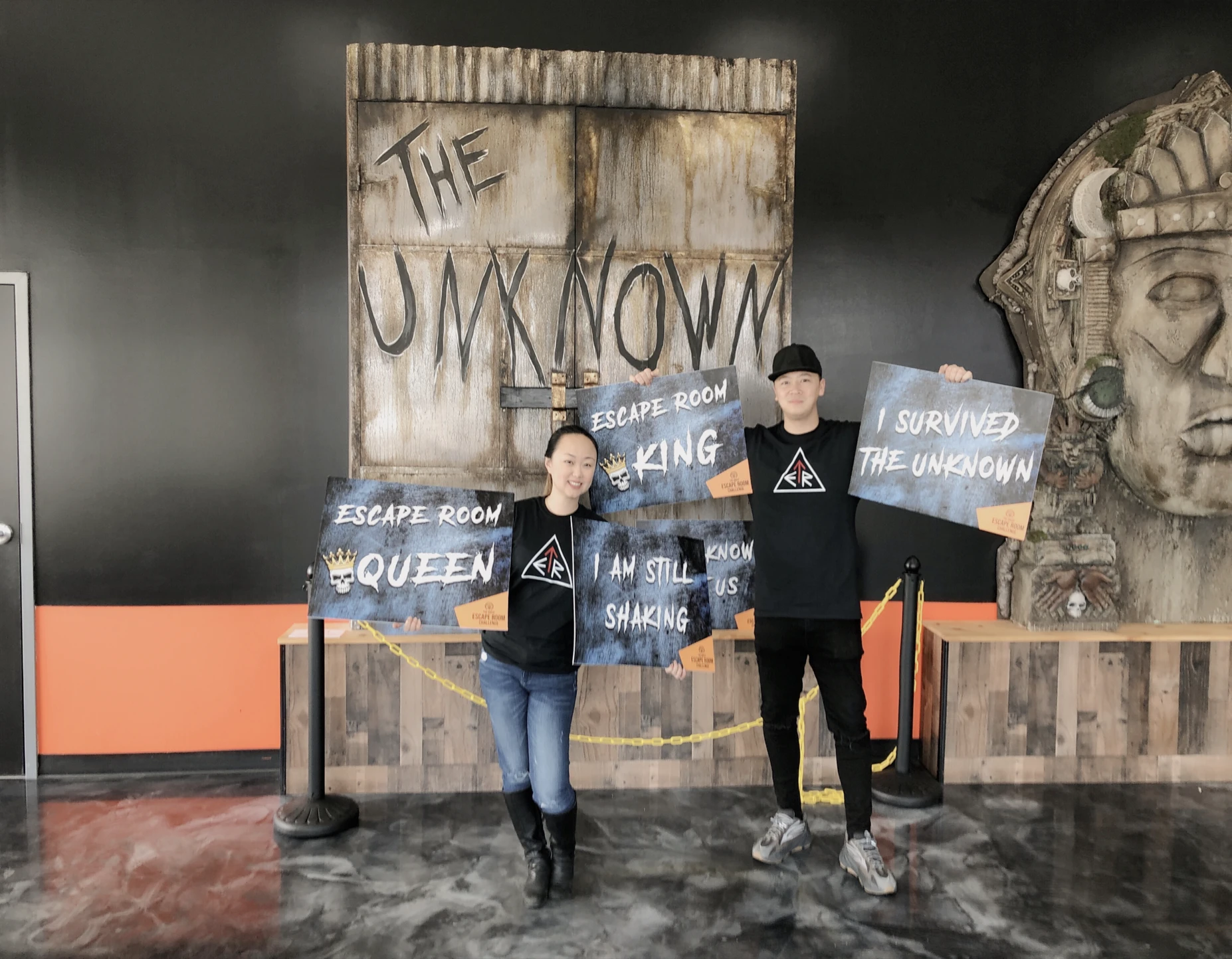 The Great Escape Room Challenge (now known as "Mad Escape") is located in a complex but a bit hard to find pending on which location you are coming from. You may have to go around one more time if you missed the entrance. They do have a huge sign on top of the building once you find it and plenty of parking space. We arrived on a Saturday and the lobby was packed. We were greeted right away by a man with a huge smile that's working diligently at the door which turned out to be the owner. We love the lobby decor as it felt like a theme park. They have huge 3D cutout posters for your victory poses at the end for each room. They will also be adding in mini games that you can play while waiting. You can tell they want the customers to have a beginning to end immersive experience as each room has an "entrance" made to go with the theme.
