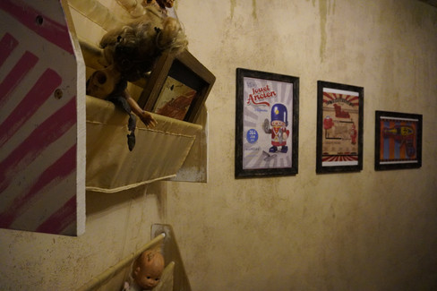 The props and decor definitely had an abandoned look. It is something you would probably see on a horror movie set.