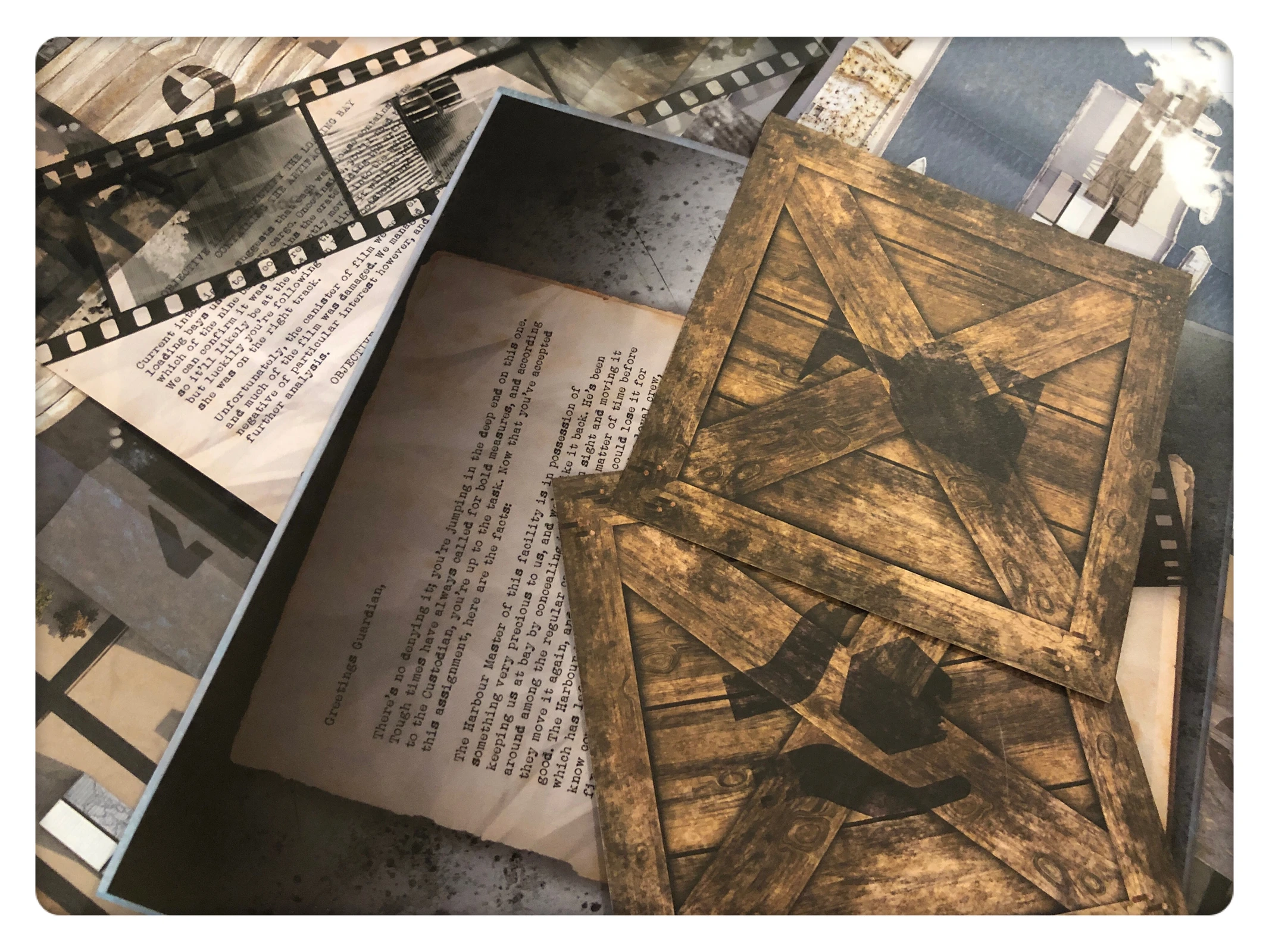 Similar to the packaging in Chapter I, you'll receive Chapter II in an envelope with a different but equally pretty sticker. The back story is printed on the inside of the envelope so open with care. Inside you'll find 1 strong box, 1 strong box note, 1 strip of negatives, 1 photographer, 6 cargo crate panels, 1 wharf map, 3 warehouse documents, 1 warehouse clipboard, and 12 crate assembly tabs. We really liked the color choices for the graphics of this game as it created that dark, rusty warehouse vibe.
