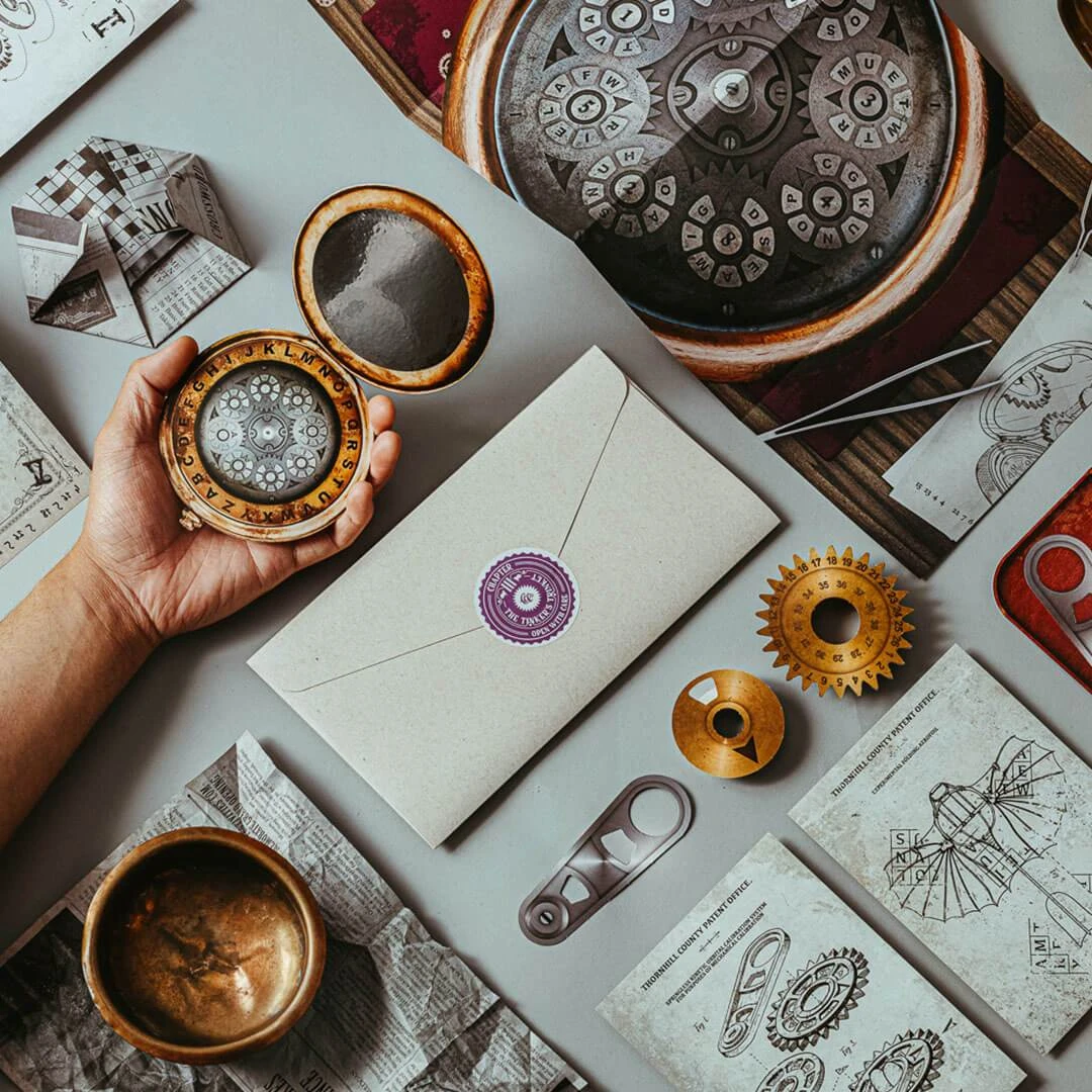 The puzzles really took us by surprise in this game. Initially we thought it was going to be a lot of decoding (and there was a bunch) but not in the way we imagined. Sticking with the idea of watches and gears, the puzzle design perfectly utilized those components to reveal their secrets. You should pay attention to every piece of paper (even ones you think might not be important) as there were a lot of hidden reveals. The physical construction aspect of the game pieces has always been a favorite feature of ours and The Curious Correspondence Club definitely outdid themselves with this one.