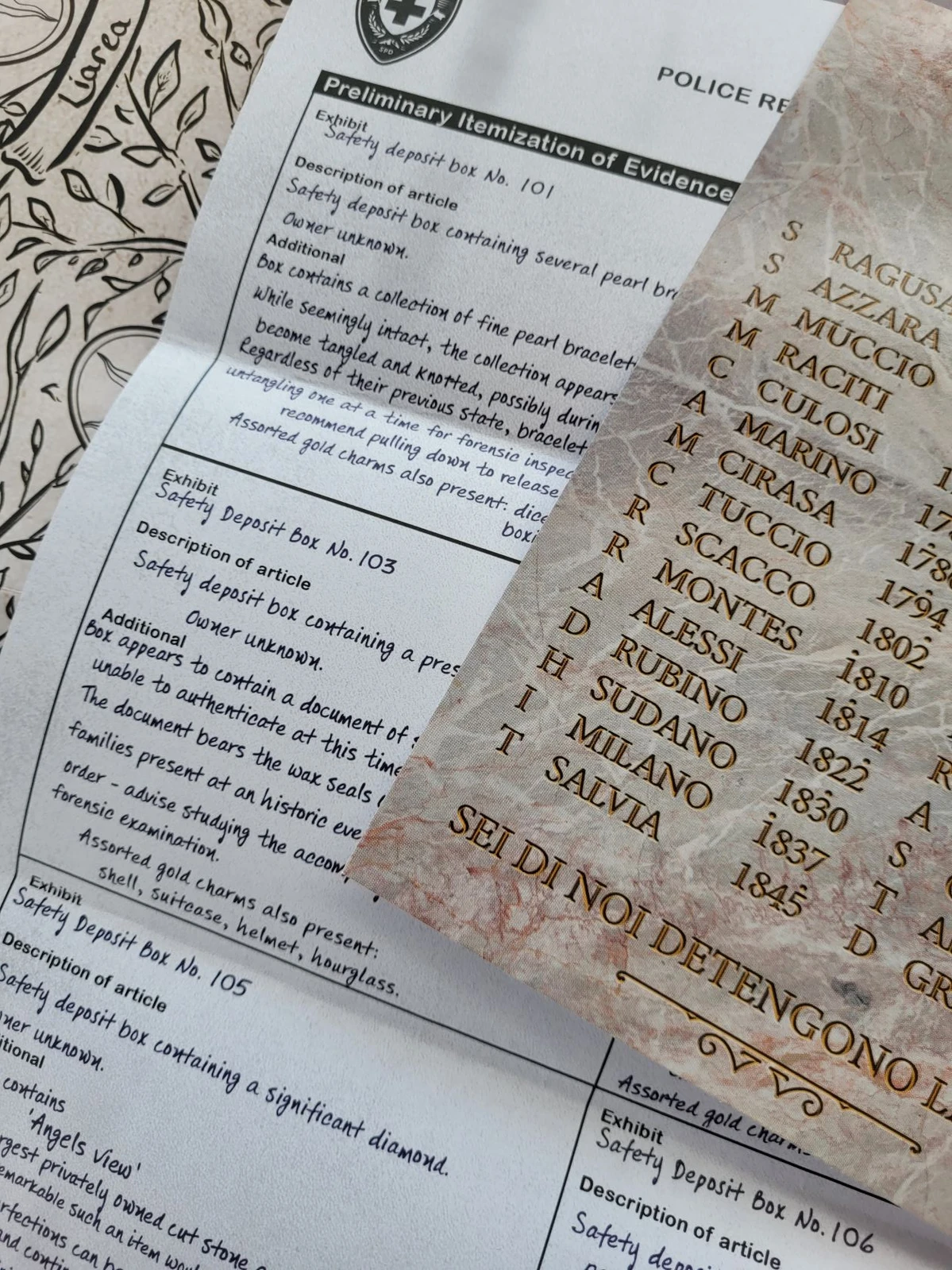 After reading the in-depth story from inside the envelope, there is a decisive nudge at the end to tell you where to start. The story is impressive in how detailed and well written it is to engulf you into the game. Going through the papers and items, I am always impressed with what CCC is able to replicate with just paper. Using papers that fit into an envelope, I was able to feel like I was rifling through 6 safety deposit boxes as well as working with a diamond and a locket.