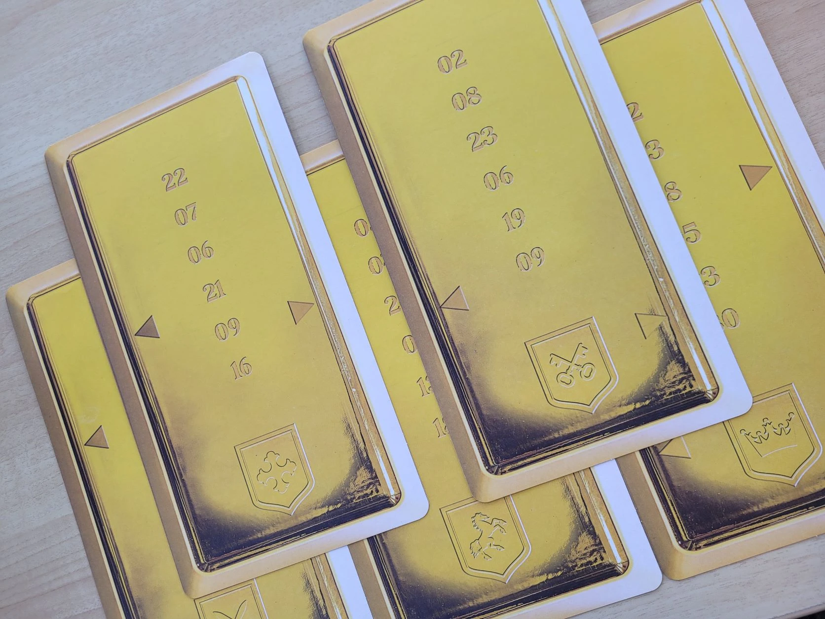 Opening the envelope, the inside has a beautiful illustration and design to help set the mood of the game. As you start to set up the game, the envelope also contains the story. After reading that, you can begin to check out the rest of the contents which contains safety deposit boxes, a steel bullion cart, a locket and other well-designed paper items.