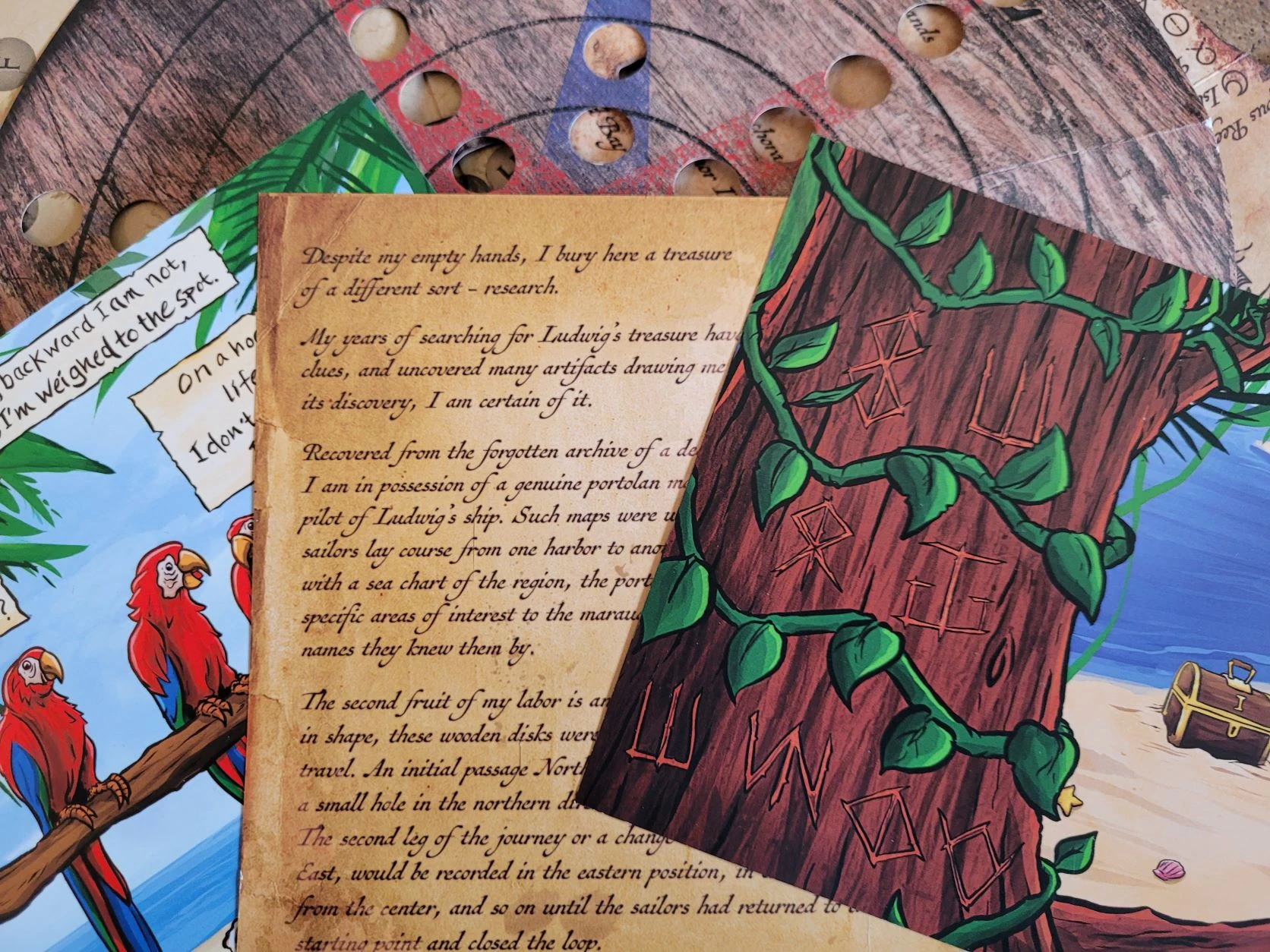 Opening the envelope, you are greeted with the in-depth story to introduce you to the game as well as a QR code that will take you to the hints and an inventory list. Inside, you will find some high-quality items including a portolan chart, a traverse board and a sea chart.