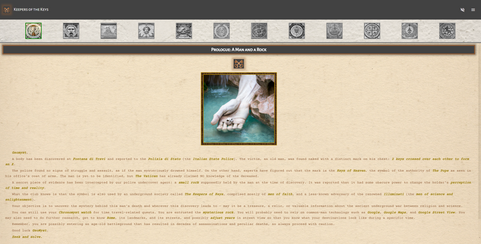 A dead body has been found at the Fontana di Trevi in Italy. In his hand, a rock that has the power to alter time and space as well as burned on his chest, the symbol of a mysterious organization called the Keepers of the Keys. You, as part of the GeoMystery Club, are now tasked with investigating the death but beware, you may be walking into the middle of an age-old conflict that has resulted in many deaths already.